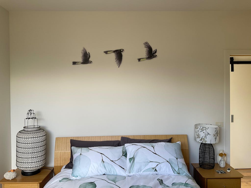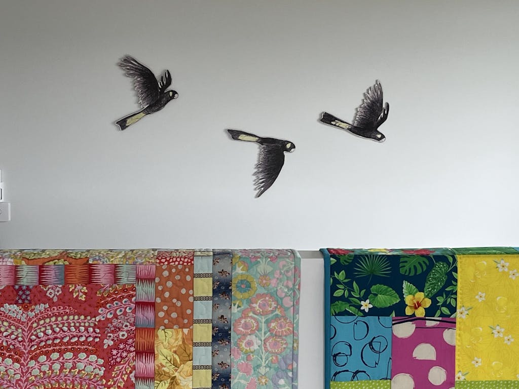 Inspired by the mid-century “flying duck” trios often seen on grandparents’ walls, but with a distinctly Australian twist. Their far-off, gentle call and slow, graceful wingbeats are almost audible as they glide across the wall.