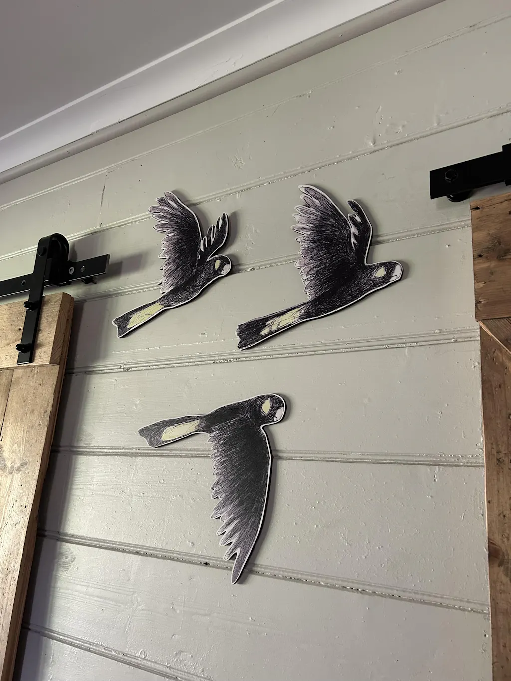 Inspired by the mid-century “flying duck” trios often seen on grandparents’ walls, but with a distinctly Australian twist. Their far-off, gentle call and slow, graceful wingbeats are almost audible as they glide across the wall.