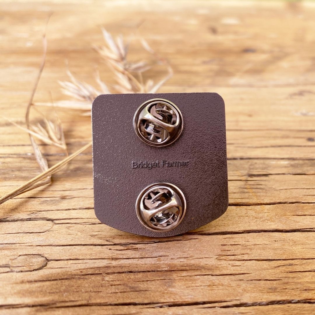 Pin measures 3cm wide. Fastens with 2 butterfly clasps at back. For extra security you can find lockable pin backs in a separate listing.
