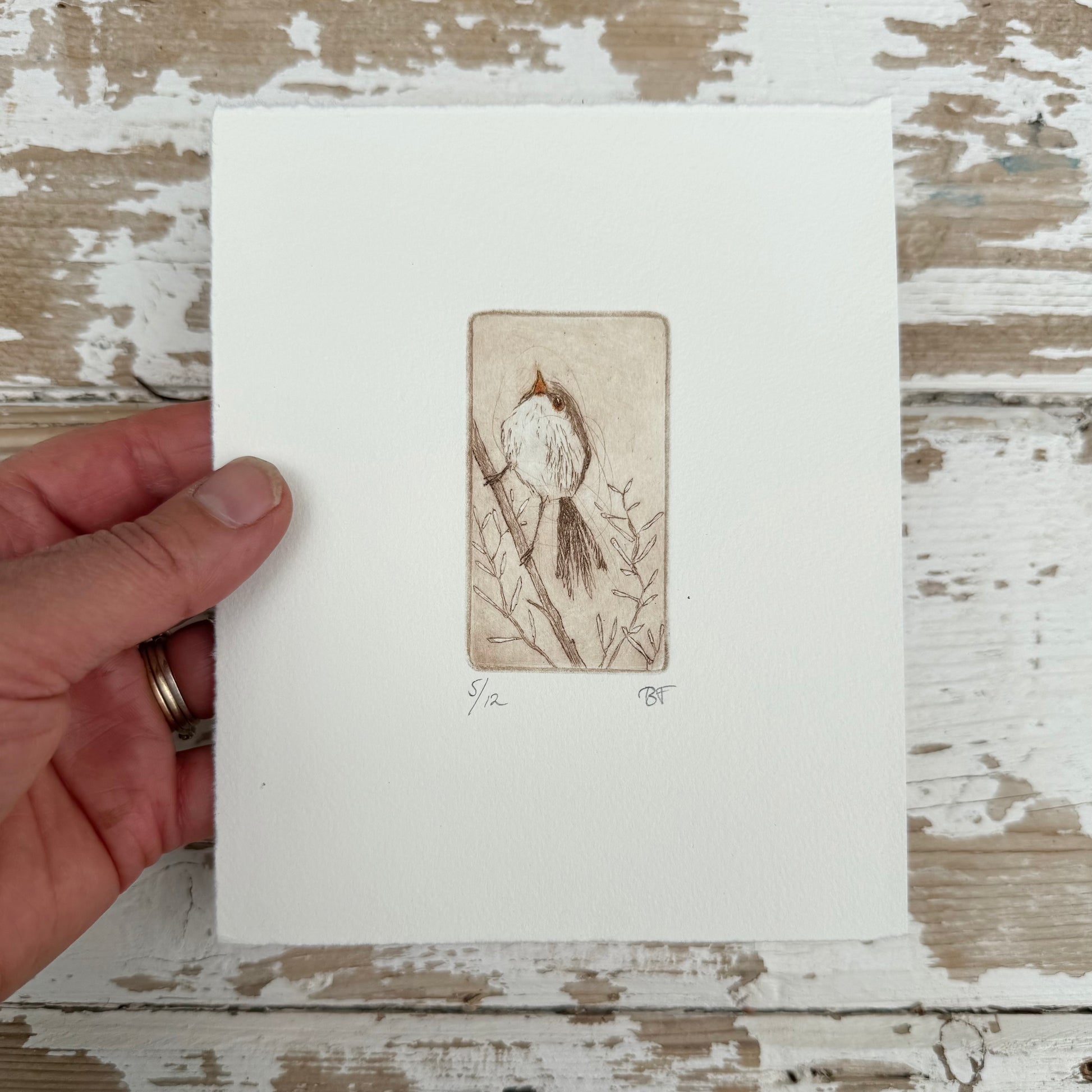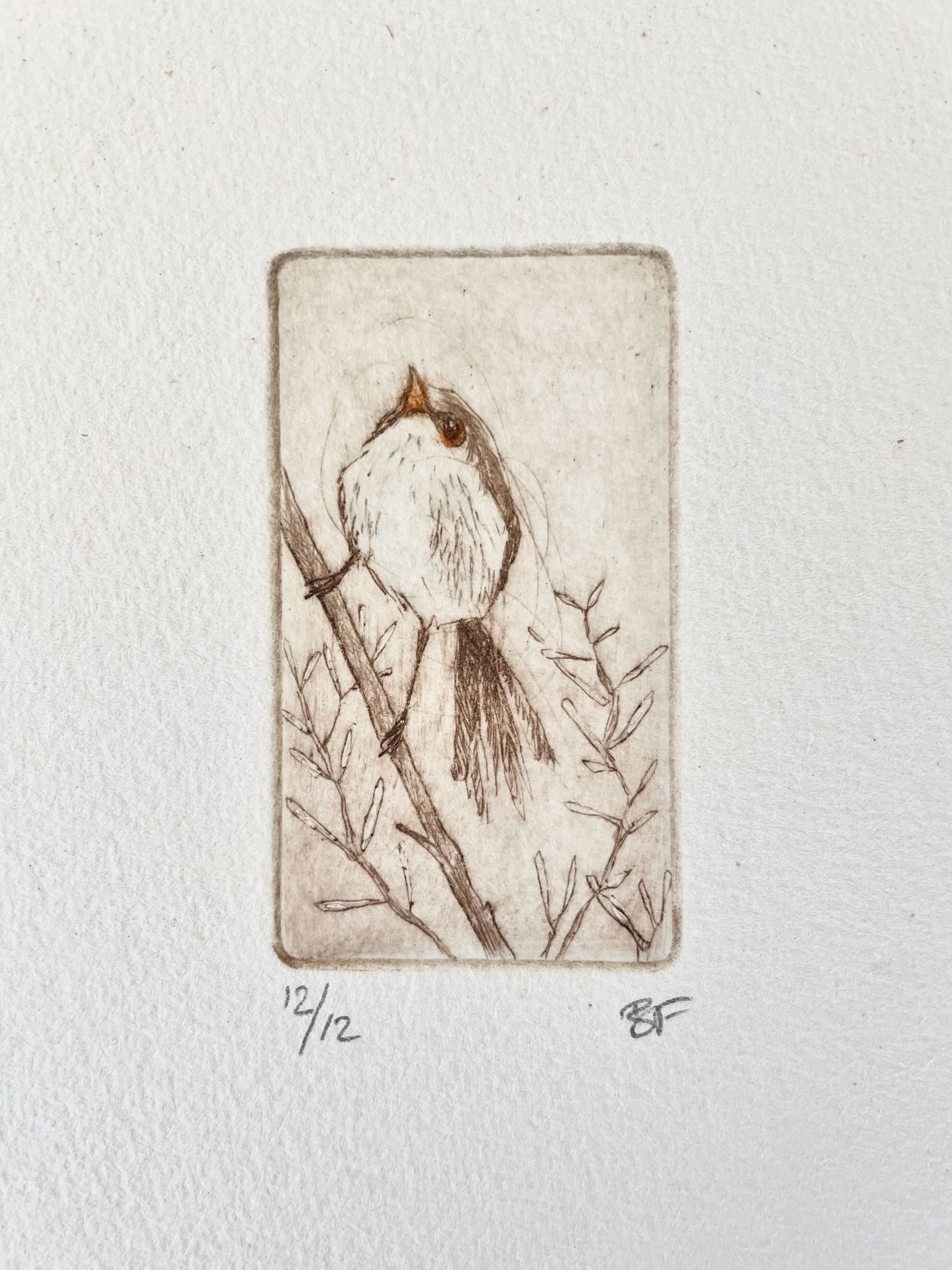 Bridget Farmer designs her range of bird themed products in her light filled central Victorian printmaking studio. She is visited by fairywrens, red-browed finches and the occasional nosey magpie. Her favourite bird (currently) is the brown thornbill who's sweet voice can be heard in the trees in her garden.