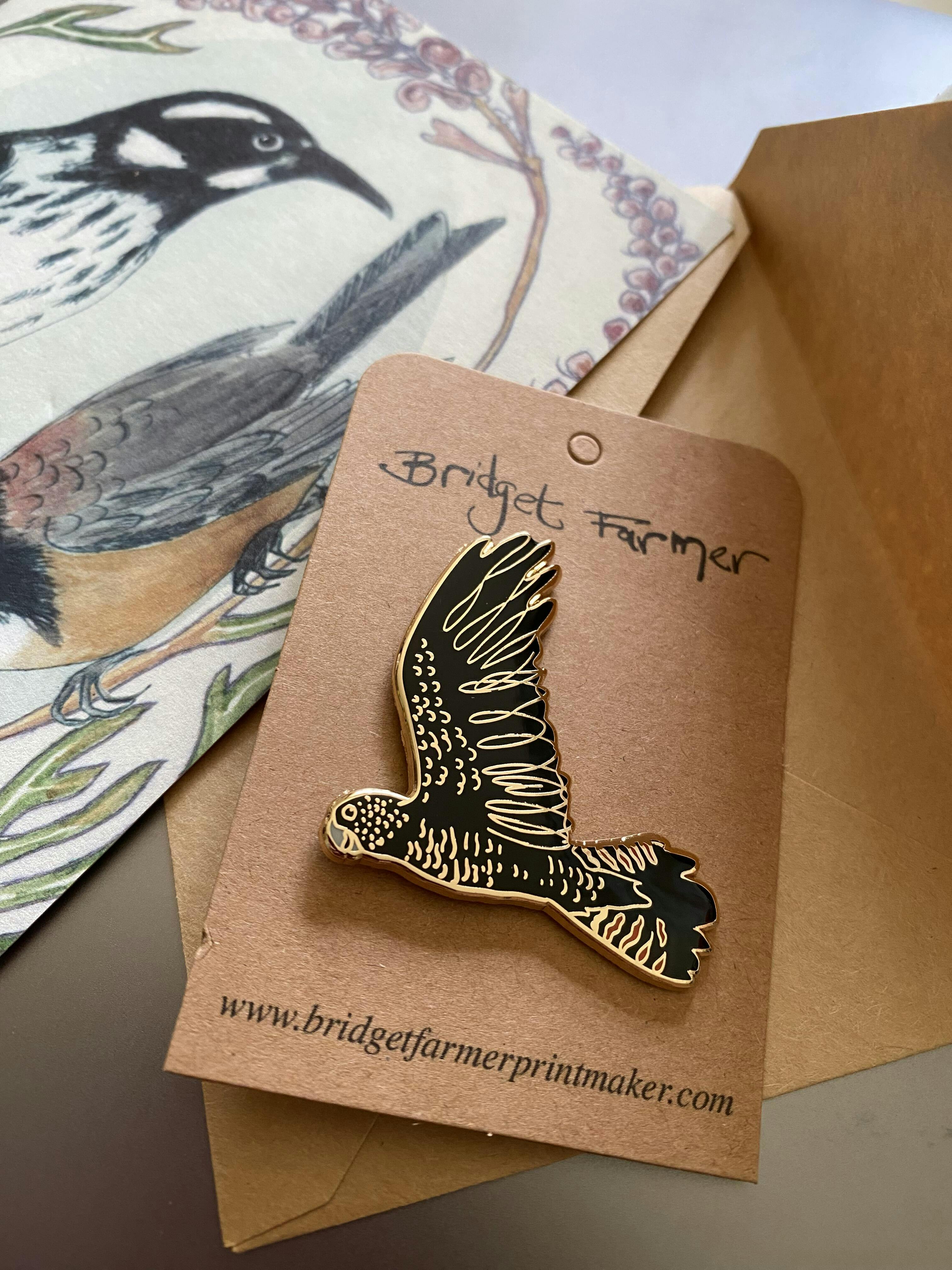 Who else runs outside when they hear the black cockies call?! It's such a treat when they grace us with their presence. Now you can bring your very own with you everywhere in the form of this red-tailed black cockatoo enamel pin. Gently flapping across your cardi or coat!