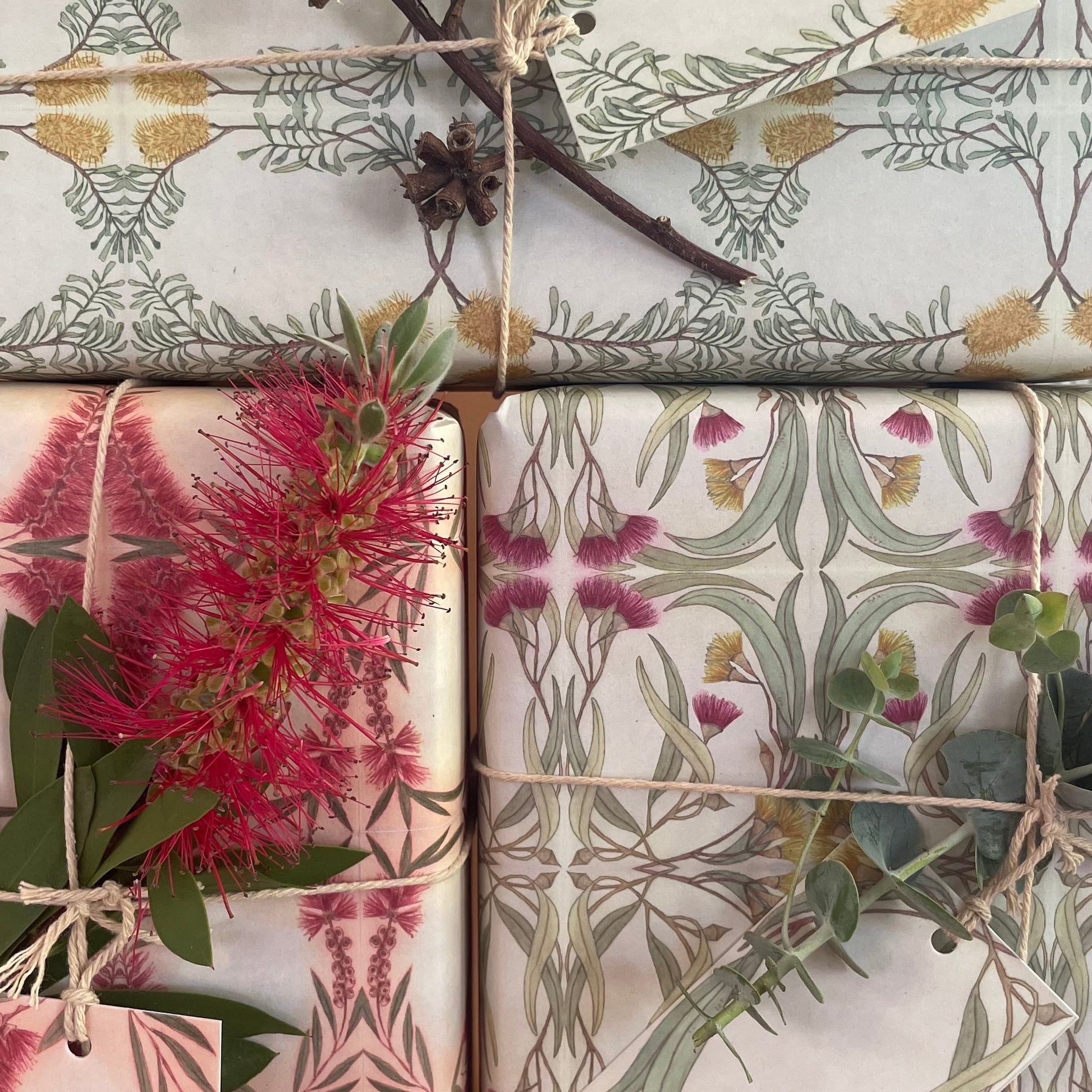 Add a touch of Australiana to your gifts with these Australian botanical wrapping papers. This design features banksia.